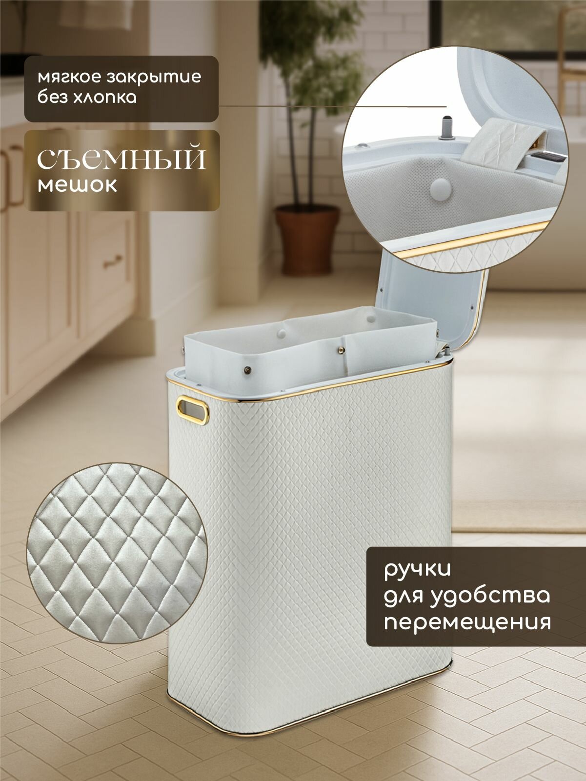 Корзина для белья узкая Geralis белая, кант золото, 25 см с боковым открытием: сравнение цен, характеристики, фото, актуальное наличие и цены.