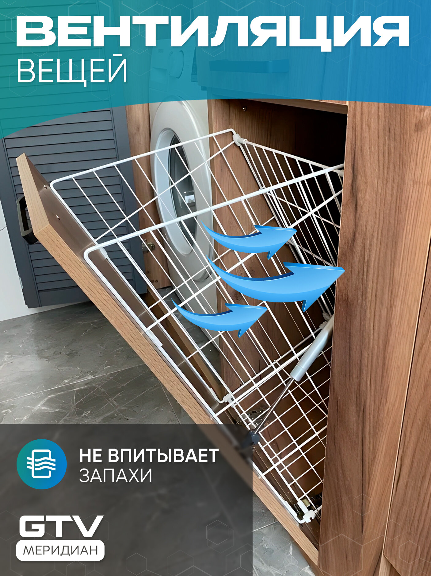 Металлическая основа гарантирует долговечность изделия, а белый цвет добавляет элегантности и свежести любому помещению. Корзина может быть интегрирована в стеллаж для белья или размещена внутри шкафа – благодаря своим компактным размерам она не займет много места.