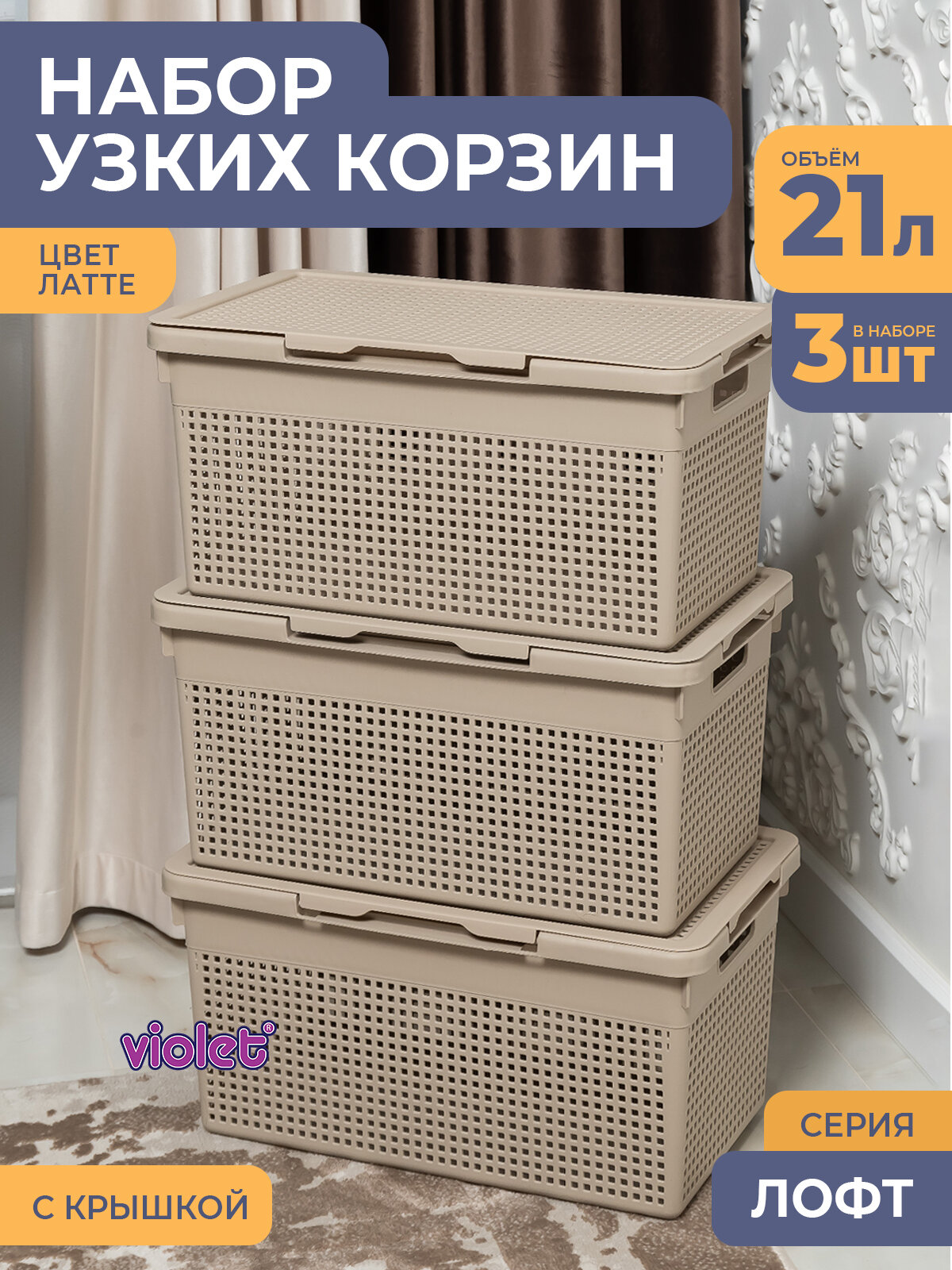 Купить Корзина для белья в ванную узкая 21л Лофт, цвет латте, набор 3шт / бак с крышкой с доставкой по всей России. Корзина для белья в ванную узкая 21л Лофт, цвет латте, набор 3шт / бак с крышкой: сравнение цен, характеристики, фото, актуальное наличие и цены.
