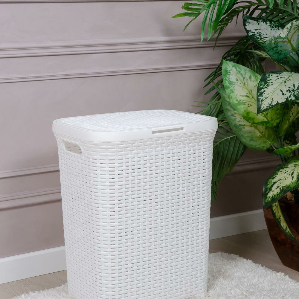 Корзина для белья Виолет 60 л ротанг цвет белый