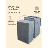 Корзина для белья Всё на местах с сортировкой белья и мешком для стирки: сравнение цен, характеристики, фото, актуальное наличие и цены.