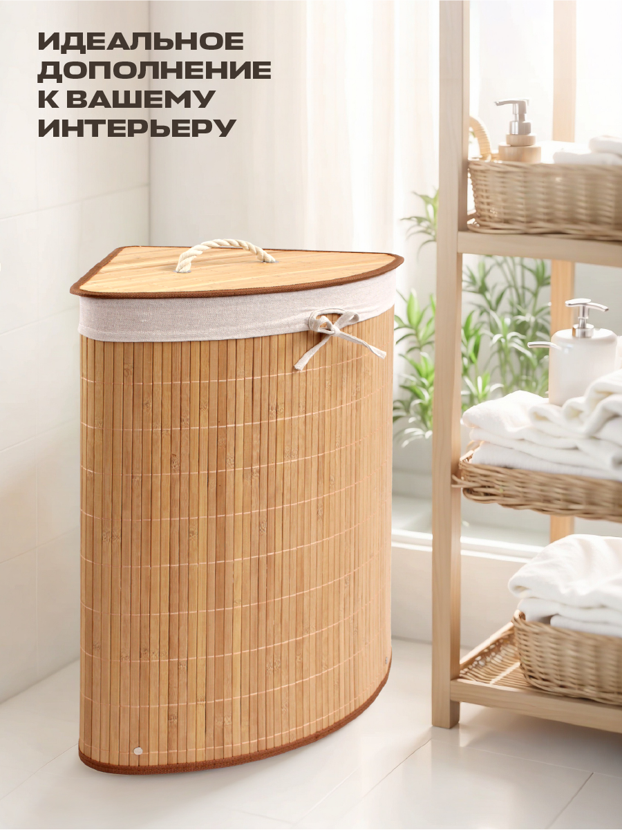 Купить Корзина для белья WELHOME в ванную, с крышкой, складная, 73 литров, бамбуковая, угловая, бежевая с доставкой по всей России. Корзина для белья WELHOME в ванную, с крышкой, складная, 73 литров, бамбуковая, угловая, бежевая: сравнение цен, характеристики, фото, актуальное наличие и цены.