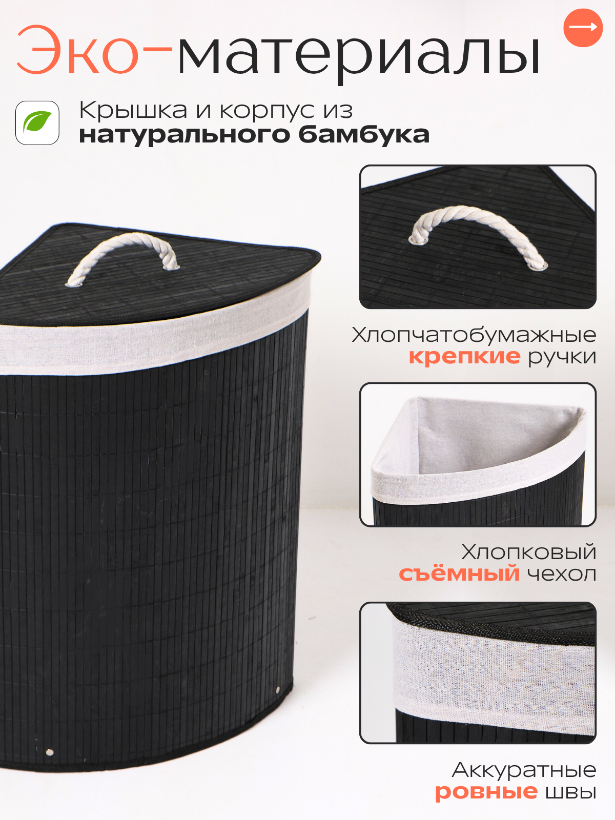 Купить Корзина для белья WELHOME в ванную, складная, с крышкой, 60 литров, бамбуковая, угловая, черная с доставкой по всей России. Корзина для белья WELHOME в ванную, складная, с крышкой, 60 литров, бамбуковая, угловая, черная: сравнение цен, характеристики, фото, актуальное наличие и цены.