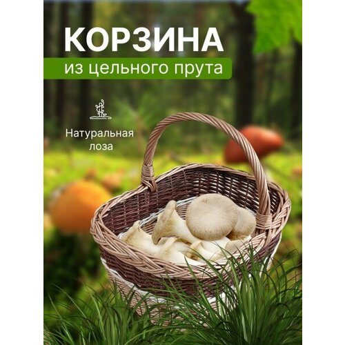 Большая вместительная корзина из натуральной лозы, предназначенная для сбора грибов, использования в быту, походов на рынок, поездок на дачу или хранения фруктов, овощей и личных вещей. Корзинка сплетена из натуральной лозы методом двойного поперечного плетения вручную. Сочетание разных цветов создает стильный внешний вид. Корзина очень практична, удобна в эксплуатации, отличается высокой надежностью в сочетании с легким весом