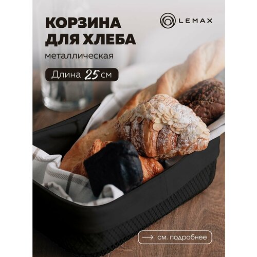 Блюдо для хлеба несмотря на простой геометрический дизайн, выглядит очень декоративно и эстетично. Черная металлическая хлебница прекрасно вписывается в современные интерьеры типа лофт или техно.