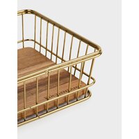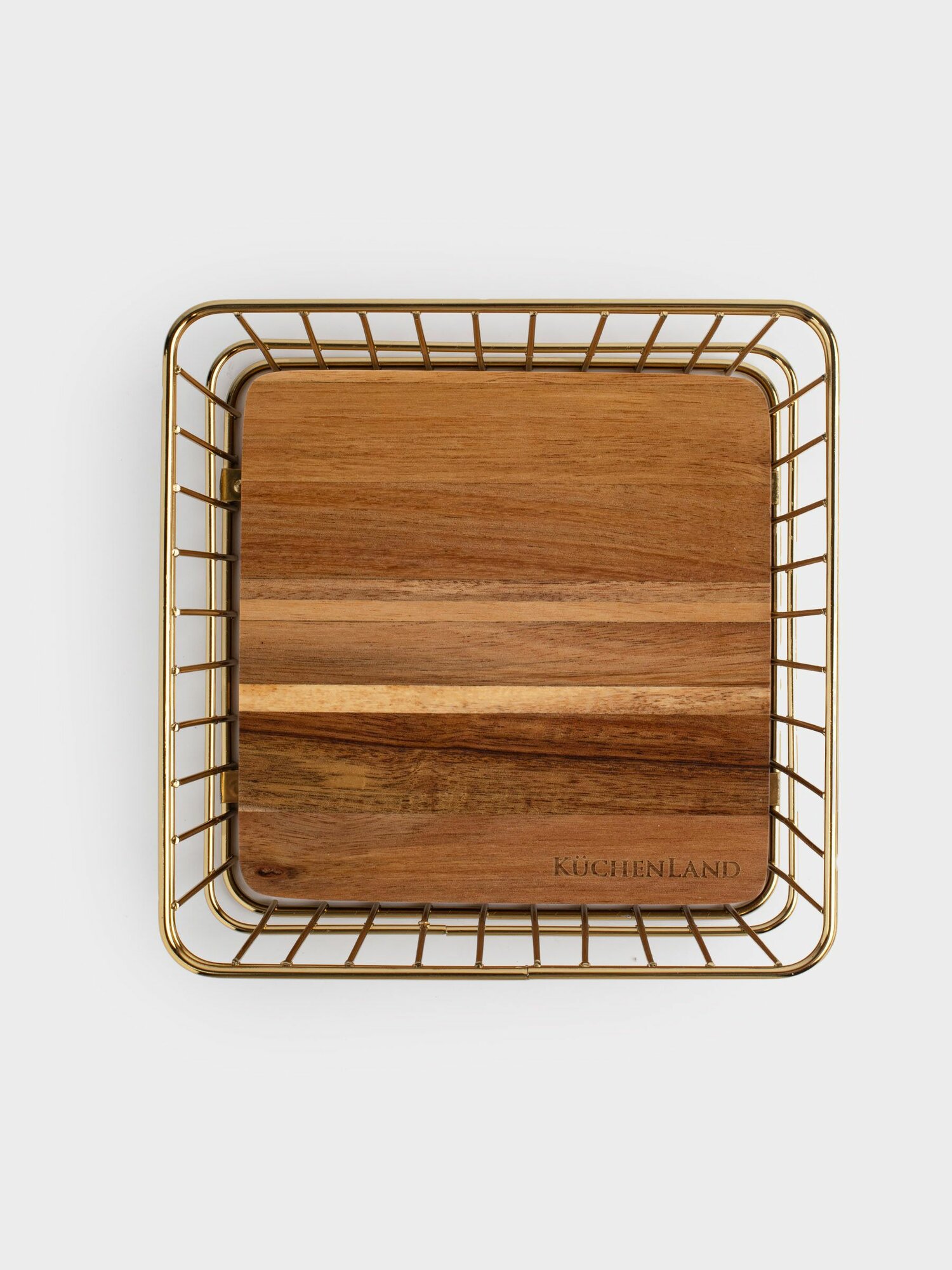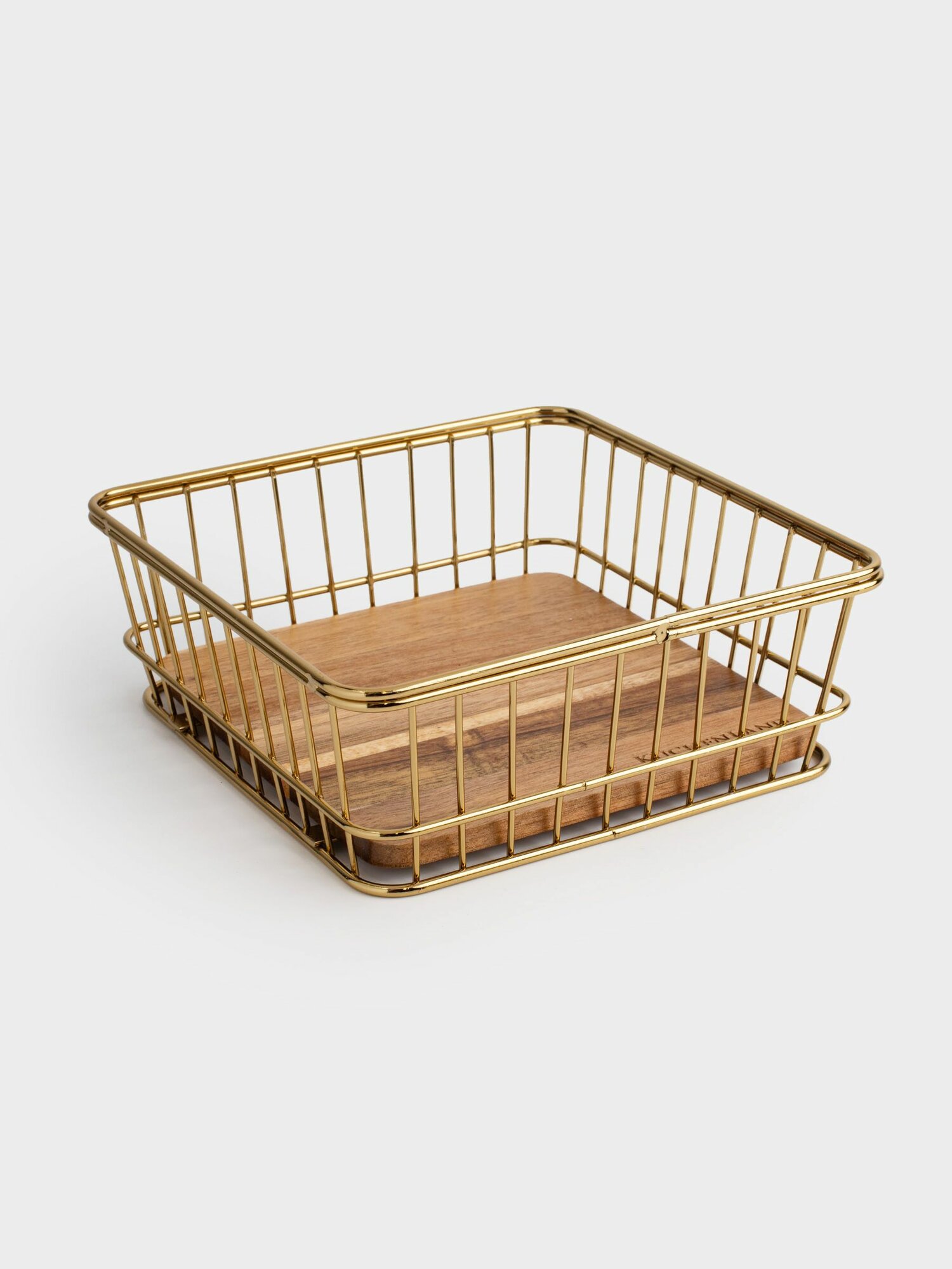 Купить Корзина для хранения, 19х19 см, металл/дерево, квадратная, золотистая, Twist gold с доставкой по всей России.