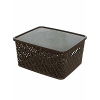 Корзина для хранения Альтернатива Плетенка М3558, плетеная, пластиковая, с крышкой, коричневая, 35.5х30.5х18 см: сравнение цен, характеристики, фото, актуальное наличие и цены.