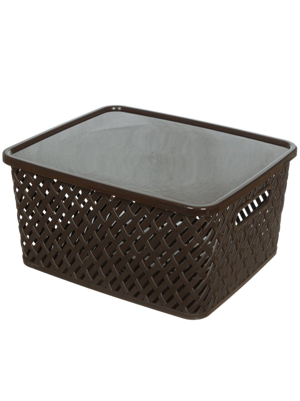 Купить Корзина для хранения Альтернатива Плетенка М3558, плетеная, пластиковая, с крышкой, коричневая, 35.5х30.5х18 см с доставкой по всей России.