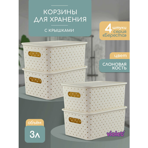 Купить Корзина для хранения Береста 3л с крышкой 4 шт / контейнер / хозяйственная коробка, цвет слоновая кость с доставкой по всей России. Корзина для хранения Береста 3л с крышкой 4 шт / контейнер / хозяйственная коробка, цвет слоновая кость: сравнение цен, характеристики, фото, актуальное наличие и цены.