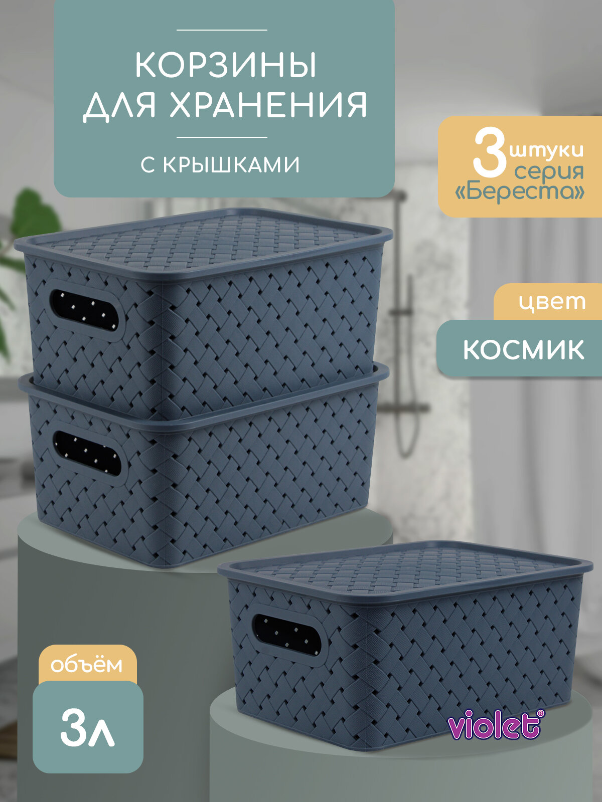 Купить Корзина для хранения Береста 3л с крышкой, набор 3шт, цвет космик / контейнер / хозяйственная коробка с доставкой по всей России. Корзина для хранения Береста 3л с крышкой, набор 3шт, цвет космик / контейнер / хозяйственная коробка: сравнение цен, характеристики, фото, актуальное наличие и цены.