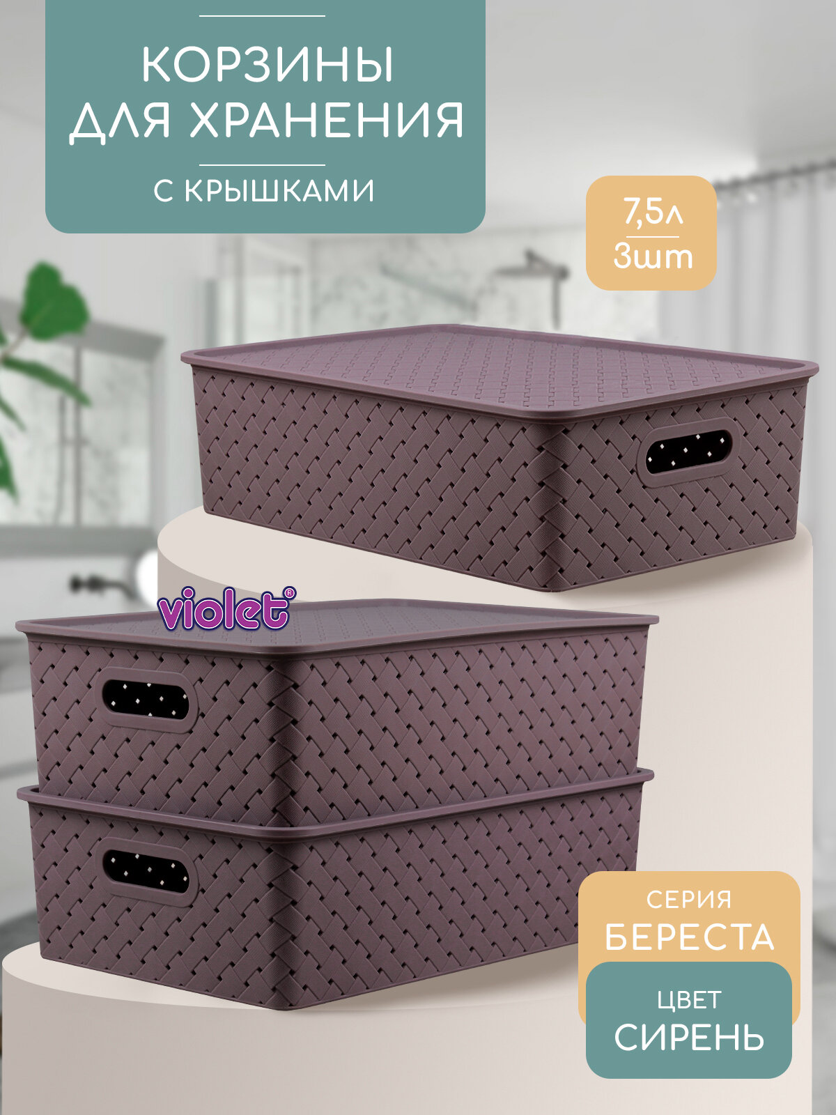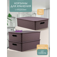 Купить Корзина для хранения Береста 7.5л с крышкой, набор 3шт, цвет сирень / контейнер / хозяйственная коробка с доставкой по всей России. Корзина для хранения Береста 7.5л с крышкой, набор 3шт, цвет сирень / контейнер / хозяйственная коробка: сравнение цен, характеристики, фото, актуальное наличие и цены.