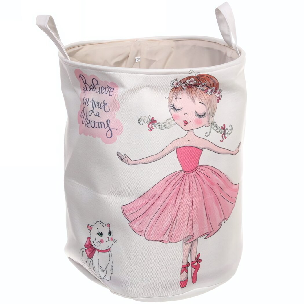 Купить Корзина для хранения круглая с принтом балерины, 45×35 см, полиэстер, бело-розовый дизайн с доставкой по всей России.