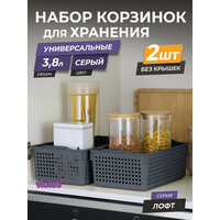 Корзина для хранения Лофт 3,8л, набор 2шт, цвет серый / контейнер / хозяйственная коробка без крышки: сравнение цен, характеристики, фото, актуальное наличие и цены.