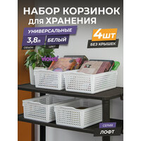 Купить Корзина для хранения Лофт 3,8л, набор, 4шт, цвет белый / контейнер / хозяйственная коробка без крышки с доставкой по всей России.