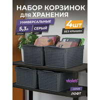 Корзина для хранения Лофт 5,3л, набор 4шт, цвет серый / контейнер / хозяйственная коробка без крышки: сравнение цен, характеристики, фото, актуальное наличие и цены.