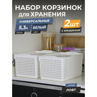 Купить Корзина для хранения Лофт 5,3л с крышкой, набор 2шт, цвет белый / контейнер / хозяйственная коробка с доставкой по всей России.