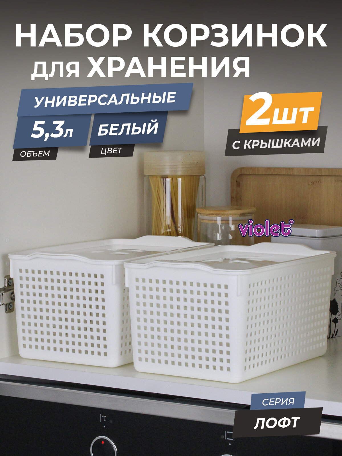 Корзина для хранения Лофт 5,3л с крышкой, набор 2шт, цвет белый / контейнер / хозяйственная коробка: сравнение цен, характеристики, фото, актуальное наличие и цены.