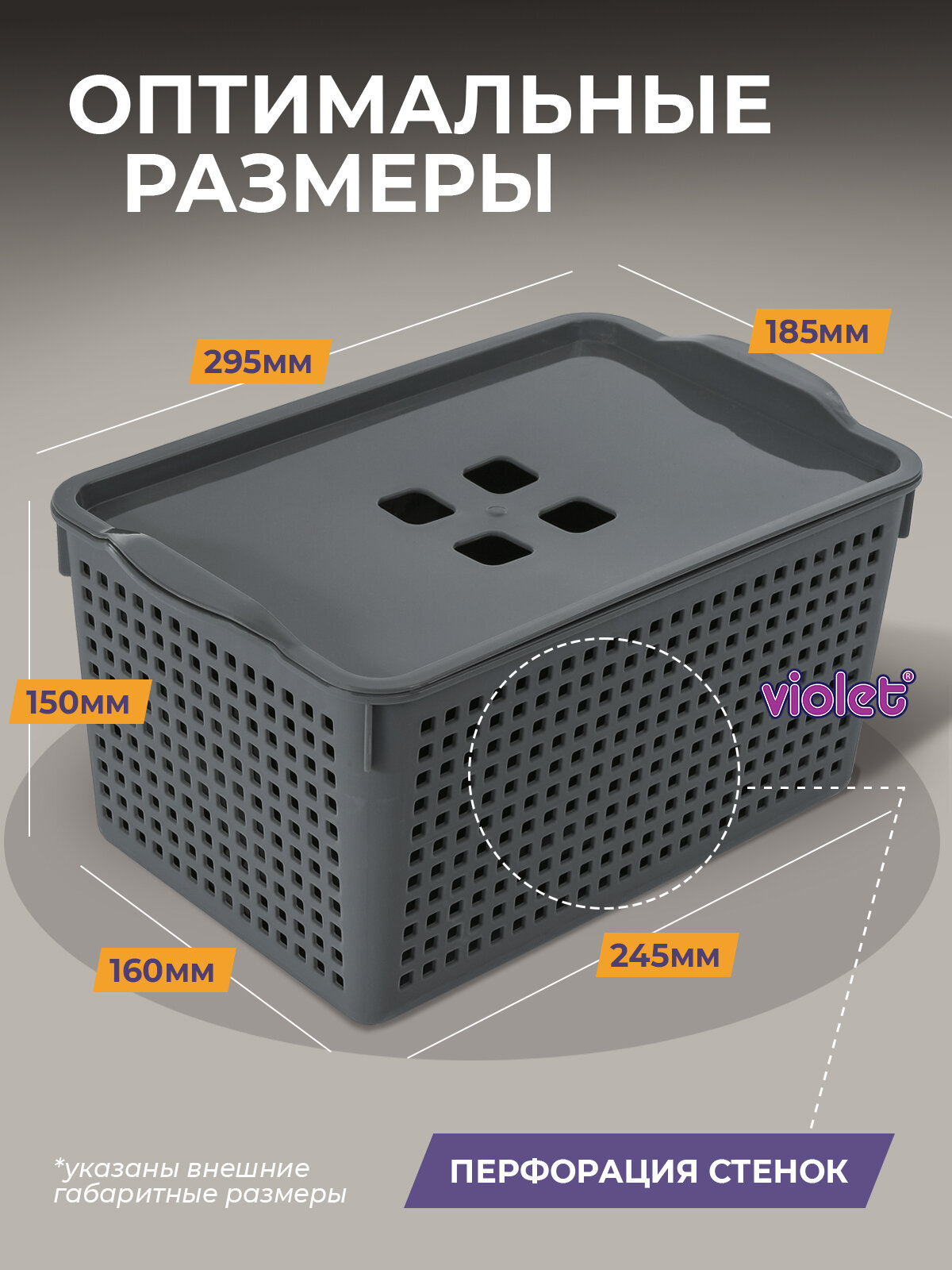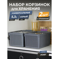 Корзина для хранения Лофт 5,3л с крышкой, набор 2шт, цвет серый / контейнер / хозяйственная коробка: сравнение цен, характеристики, фото, актуальное наличие и цены.