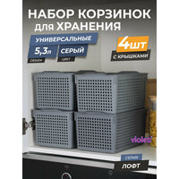 Купить Корзина для хранения Лофт 5,3л с крышкой, набор 4шт, цвет серый / контейнер / хозяйственная коробка с доставкой по всей России.