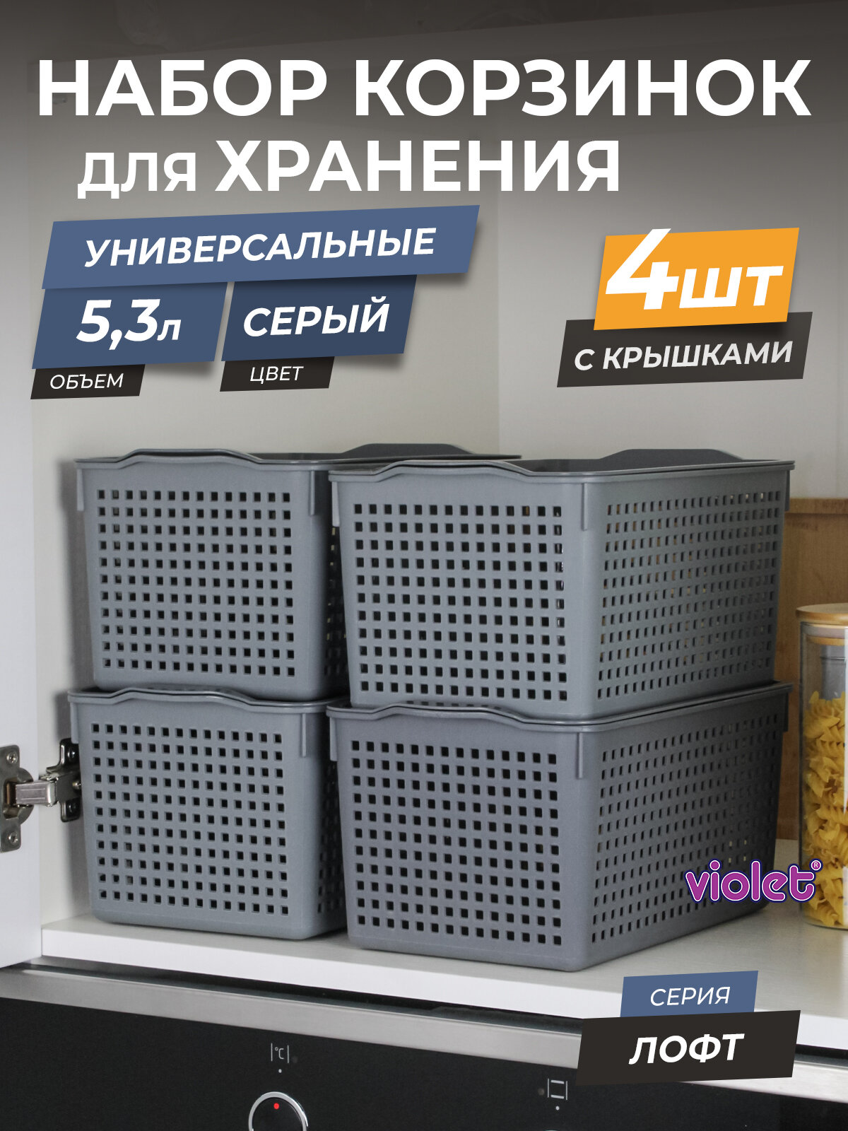Корзина для хранения Лофт 5,3л с крышкой, набор 4шт, цвет серый / контейнер / хозяйственная коробка: сравнение цен, характеристики, фото, актуальное наличие и цены.