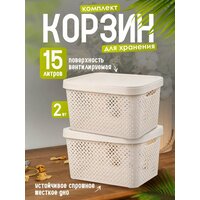 Купить Корзина для хранения Plast Team STOCKHOLM с крышкой 15 л 36х27,5х20,5 см 2 шт, (молочный туман) 5007 с доставкой по всей России.