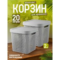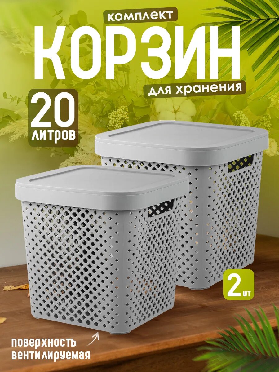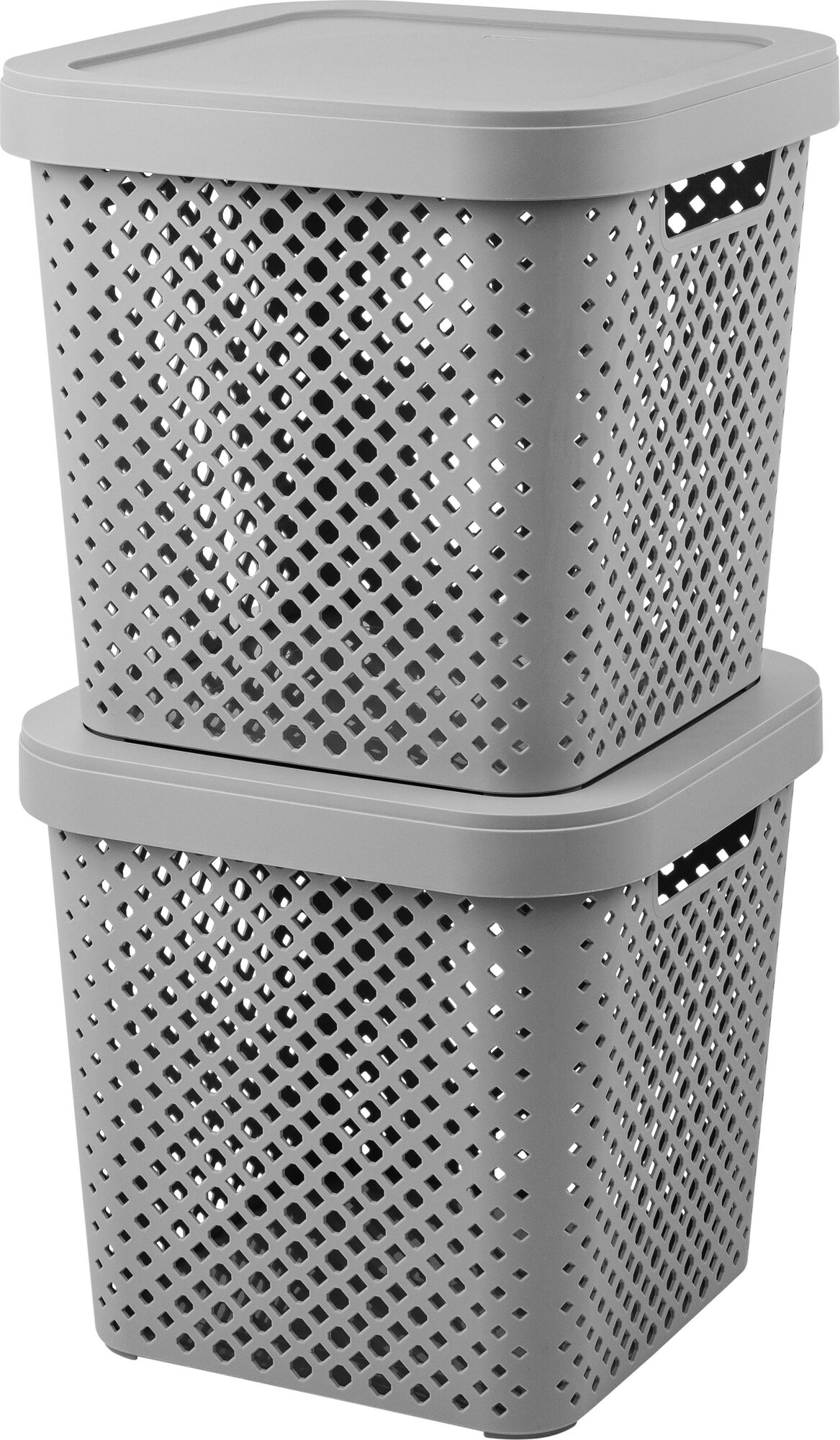 Купить Корзина для хранения Plast Team STOCKHOLM с крышкой 20 л 31х31х30 см 2 шт, (серый шторм) 5008 с доставкой по всей России.