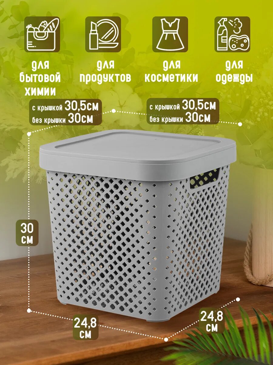 Корзина для хранения Plast Team STOCKHOLM с крышкой 20 л 31х31х30 см 2 шт, (серый шторм) 5008: сравнение цен, характеристики, фото, актуальное наличие и цены.