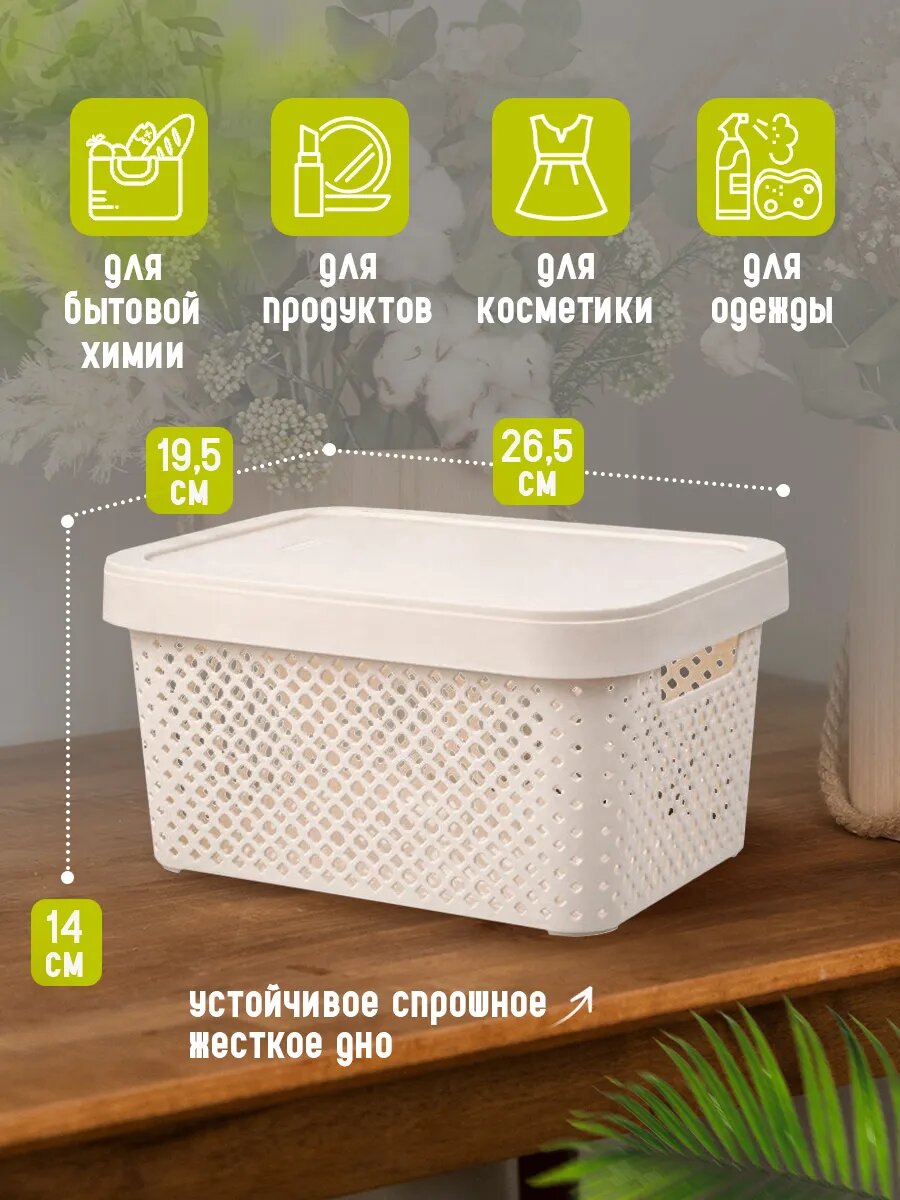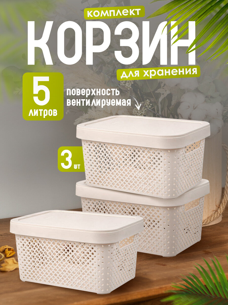 Корзина для хранения Plast Team STOCKHOLM с крышкой 5 л 26,5х19,5х14 см 3 шт, (молочный туман) 5006: сравнение цен, характеристики, фото, актуальное наличие и цены.
