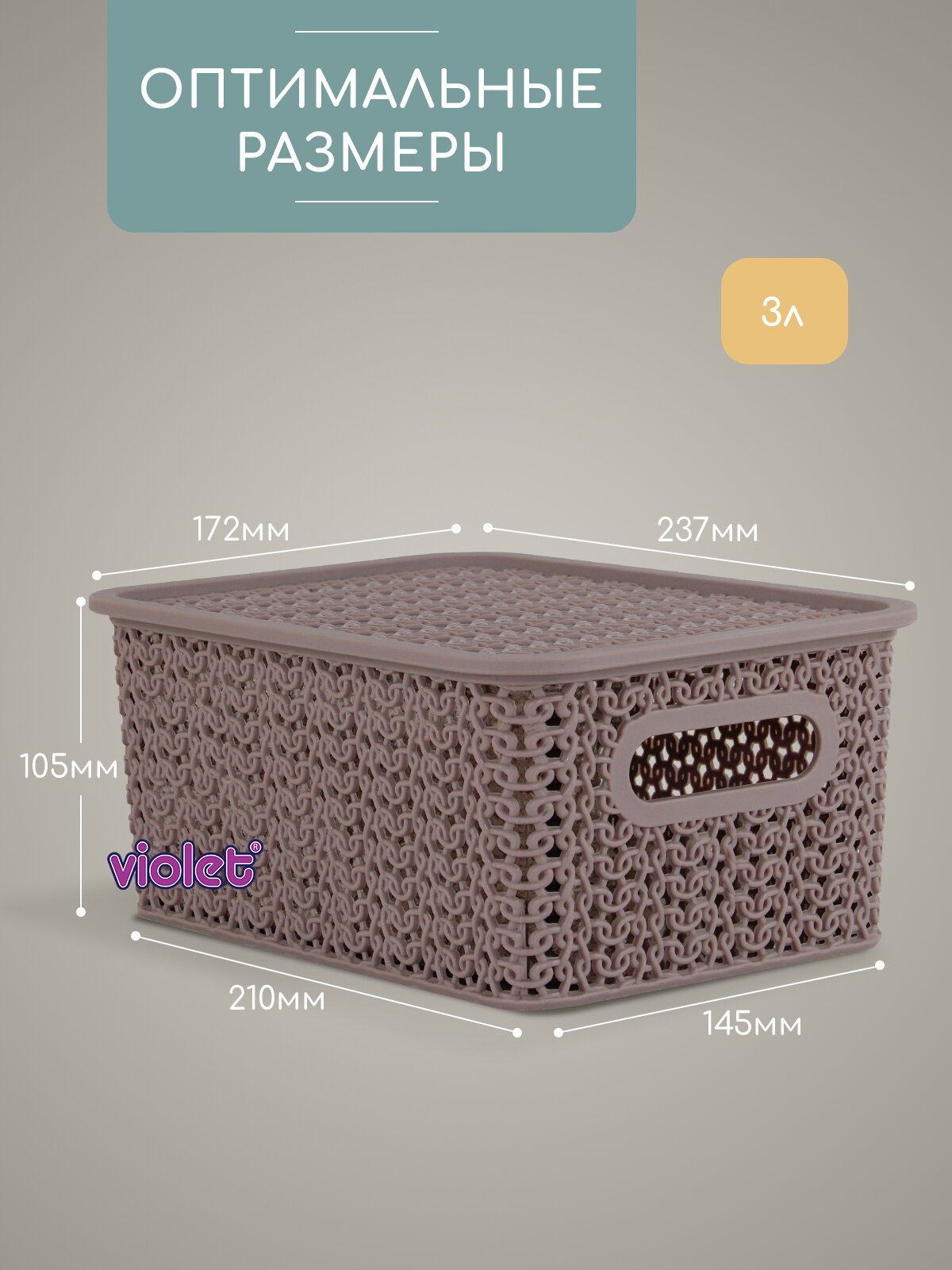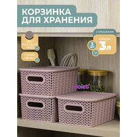 Корзина для хранения с крышкой Вязь 3л, набор 3шт, цвет розовый нюд / контейнер / хозяйственная коробка: сравнение цен, характеристики, фото, актуальное наличие и цены.
