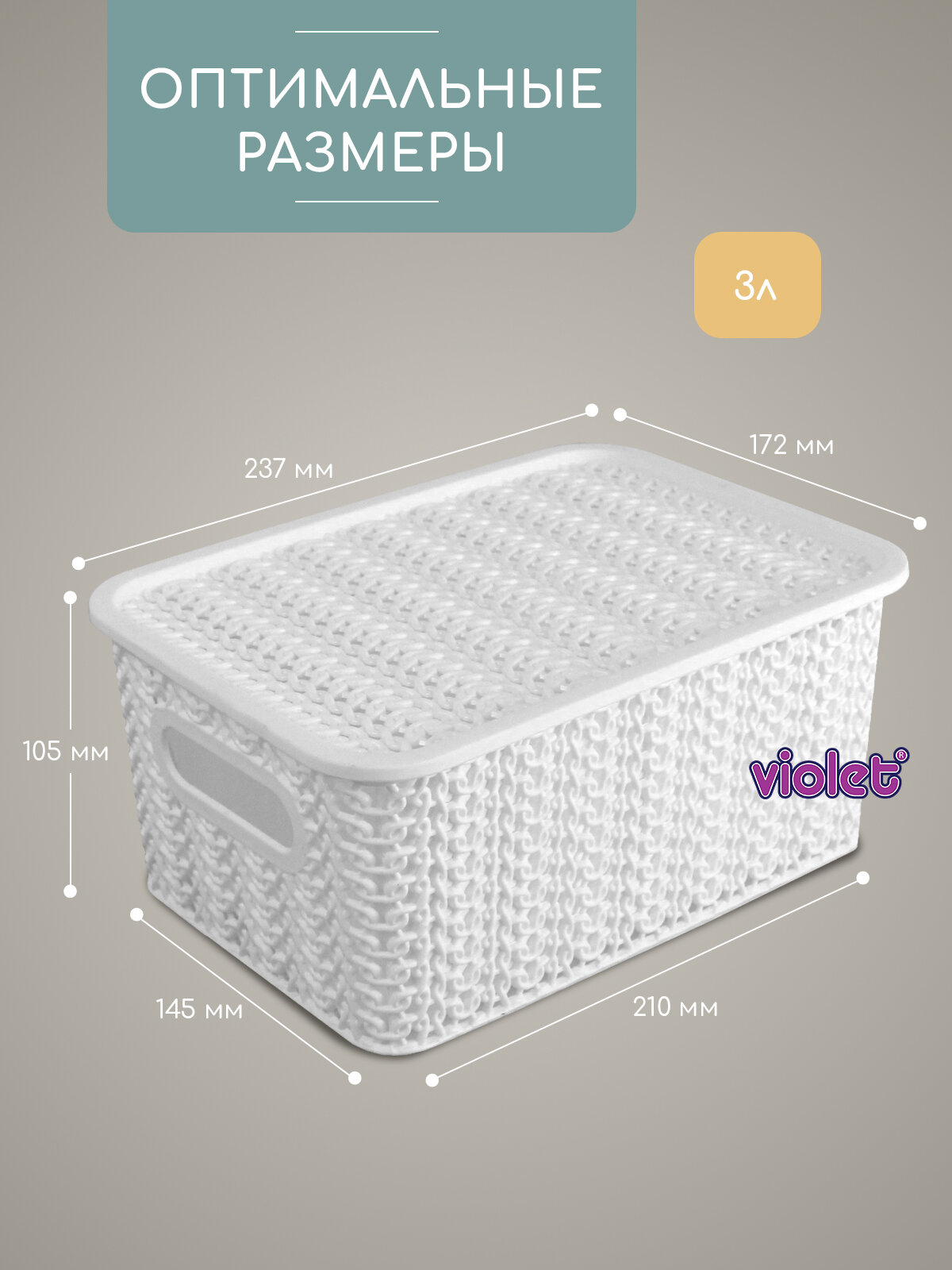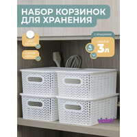 Корзина для хранения с крышкой Вязь 3л, набор 4шт, цвет белый / контейнер / хозяйственная коробка: сравнение цен, характеристики, фото, актуальное наличие и цены.