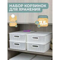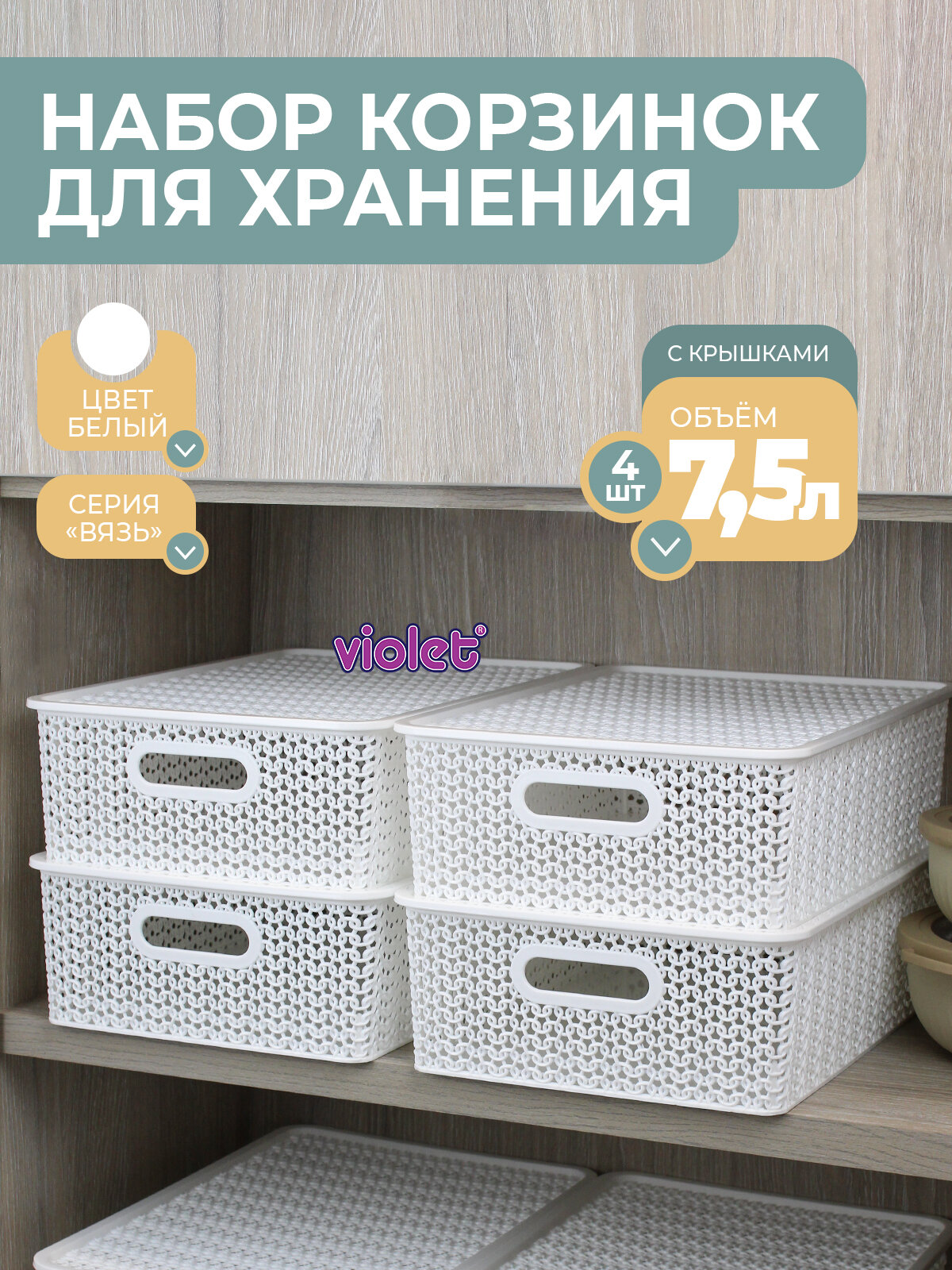 Корзина для хранения с крышкой Вязь 7,5л, набор 4шт, цвет белый / контейнер / хозяйственная коробка: сравнение цен, характеристики, фото, актуальное наличие и цены.