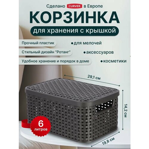 Темно-коричневый цвет корзинки придает ей элегантный и современный вид, который будет гармонично смотреться в любом интерьере.