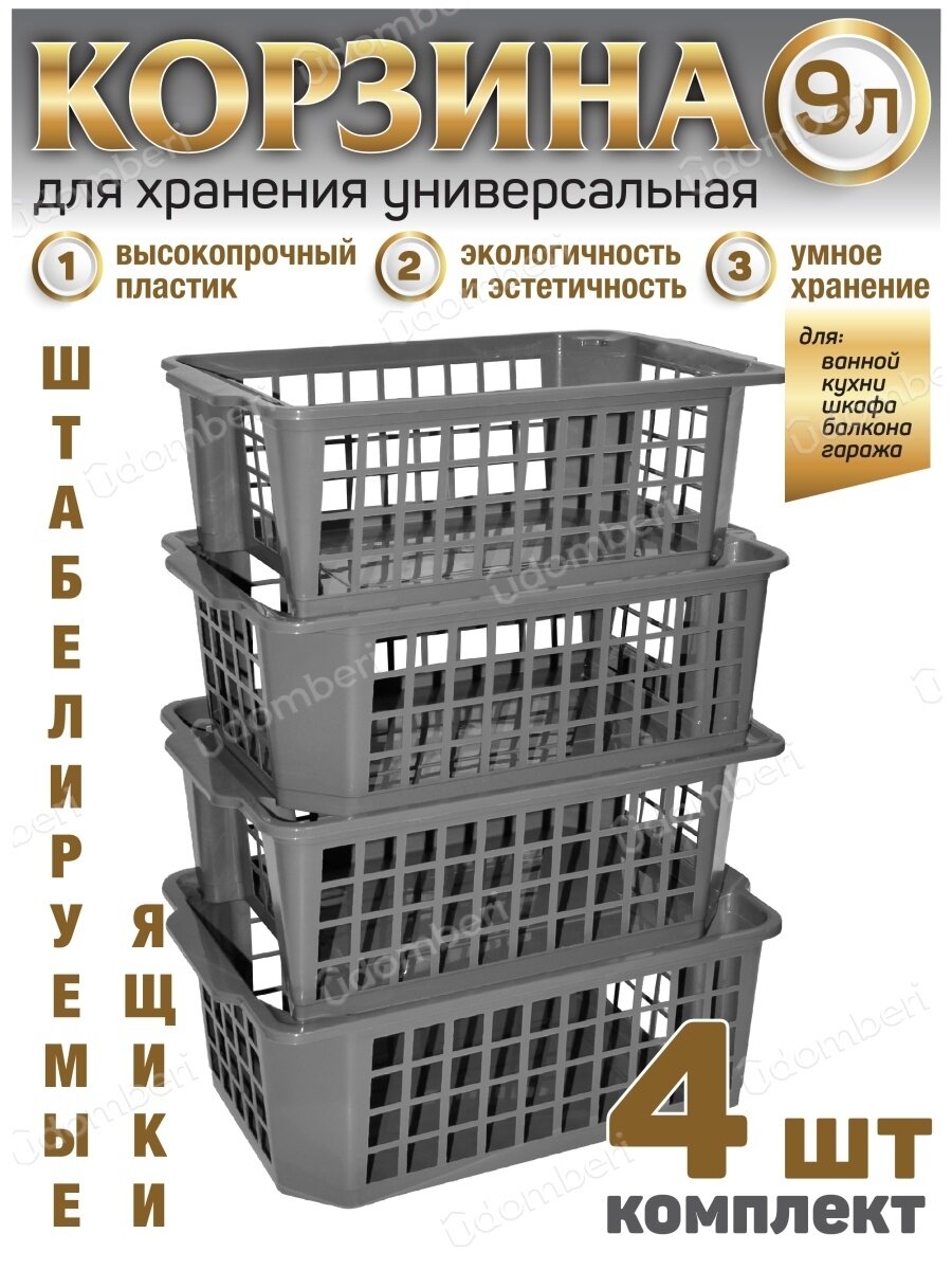 Купить Корзина для хранения ящик 9л коробка 4шт пластиковая вещей с доставкой по всей России. Корзина для хранения ящик 9л коробка 4шт пластиковая вещей: сравнение цен, характеристики, фото, актуальное наличие и цены.