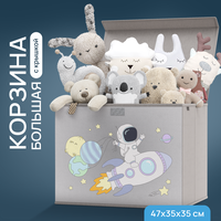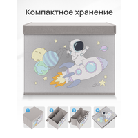 Купить Корзина для игрушек Организуй красиво «Космонавт и планеты», 47х35х35 см, для хранения, серая, ящик, коробка, короб с доставкой по всей России.