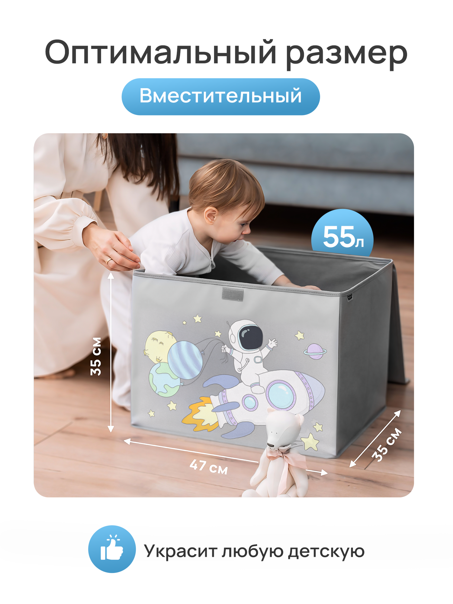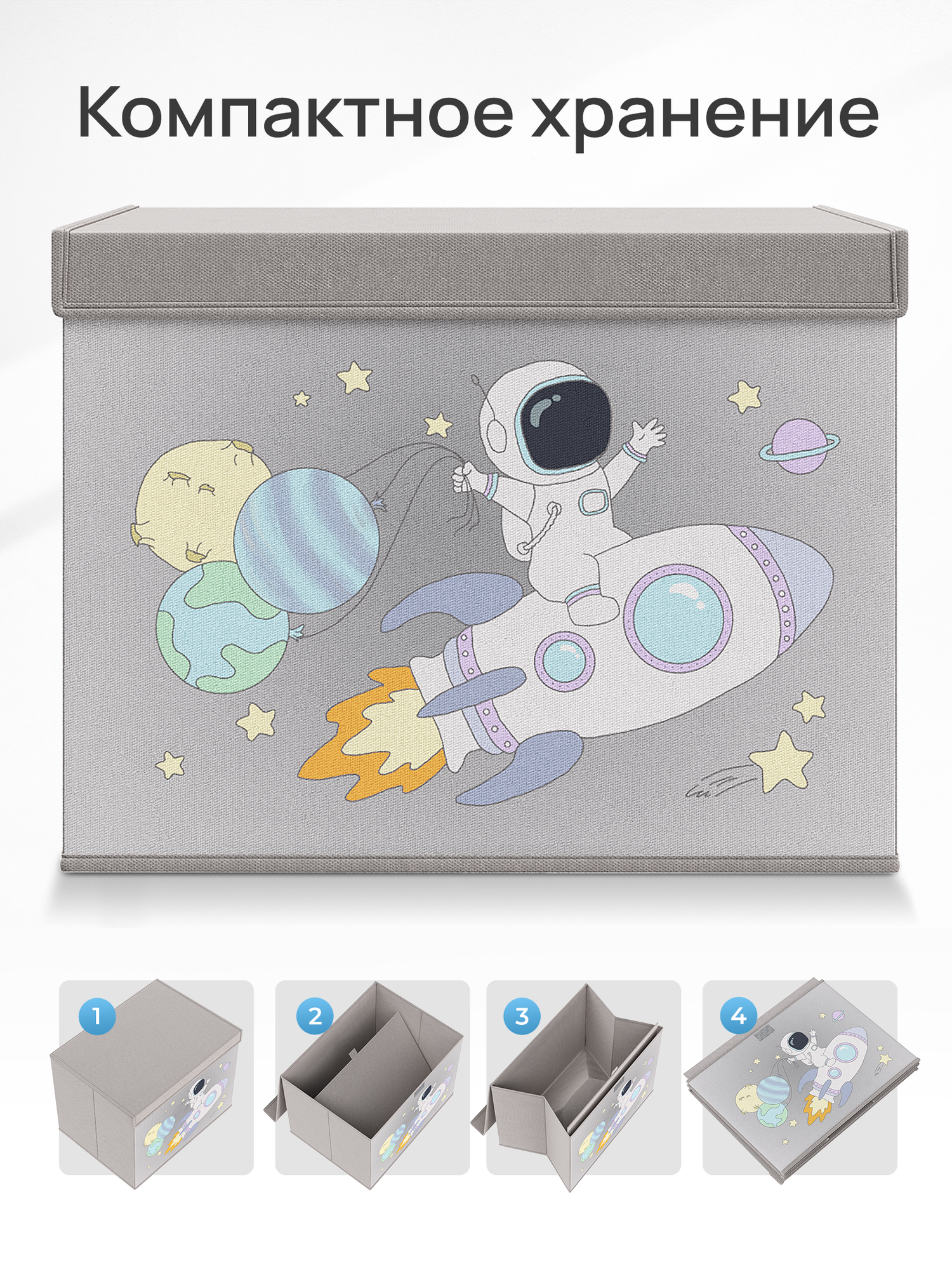 Корзина для игрушек Организуй красиво «Космонавт и планеты», 47х35х35 см, для хранения, серая, ящик, коробка, короб: сравнение цен, характеристики, фото, актуальное наличие и цены.
