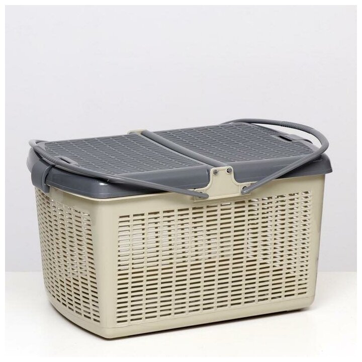 Корзина для перевозки животных 47x36x27,5см, пластиковая, с ручками, серая, 1 шт