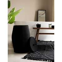 Черная корзина в форме кувшина с крышкой для хранения пледов, одеял, подушек, спортинвентаря, игрушек, вещей, белья. Интерьерная и функциональная корзина преобразит интерьер в ванной, гардеробной, детской, гостиной. Корзина с эргономичными ручками изготовлена из хлопкового шнура.