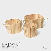Корзина LaDо́m, для хранения, 3 шт, ручной работы, дерево, квадратная, деревянная, бежевый: сравнение цен, характеристики, фото, актуальное наличие и цены.