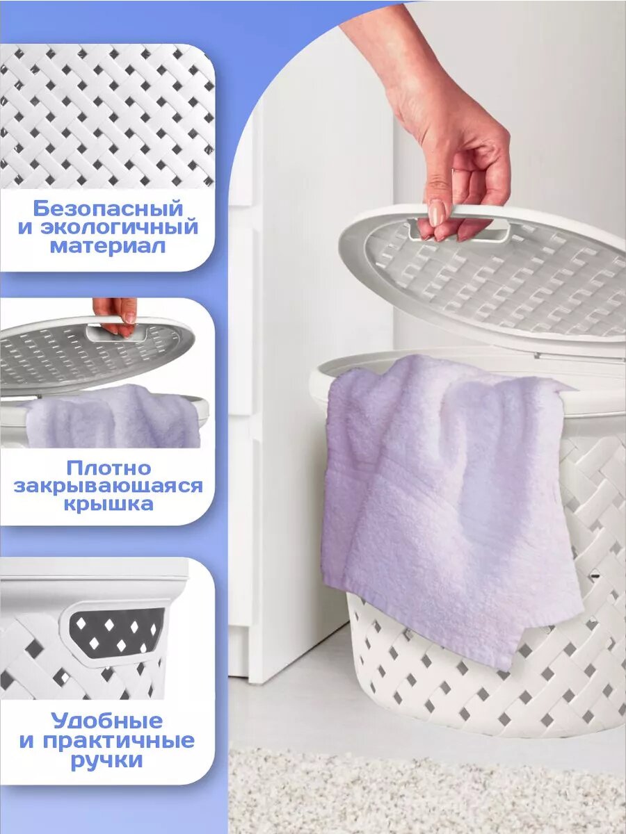 Корзина Plast Team «Rattan» для белья в ванную с крышкой плетеная пластик 14 л 2 шт, (молочный туман) 4088: сравнение цен, характеристики, фото, актуальное наличие и цены.