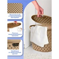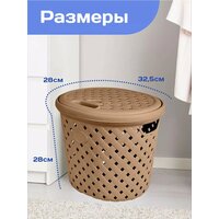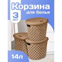 Купить Корзина Plast Team «Rattan» для белья в ванную с крышкой плетеная пластик 14 л 3 шт, (шоколадный мокко) 4088 с доставкой по всей России.