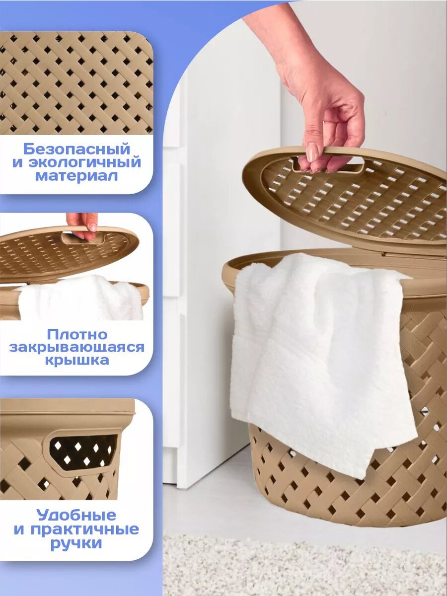 Корзина Plast Team «Rattan» для белья в ванную с крышкой плетеная пластик 14 л 3 шт, (шоколадный мокко) 4088: сравнение цен, характеристики, фото, актуальное наличие и цены.