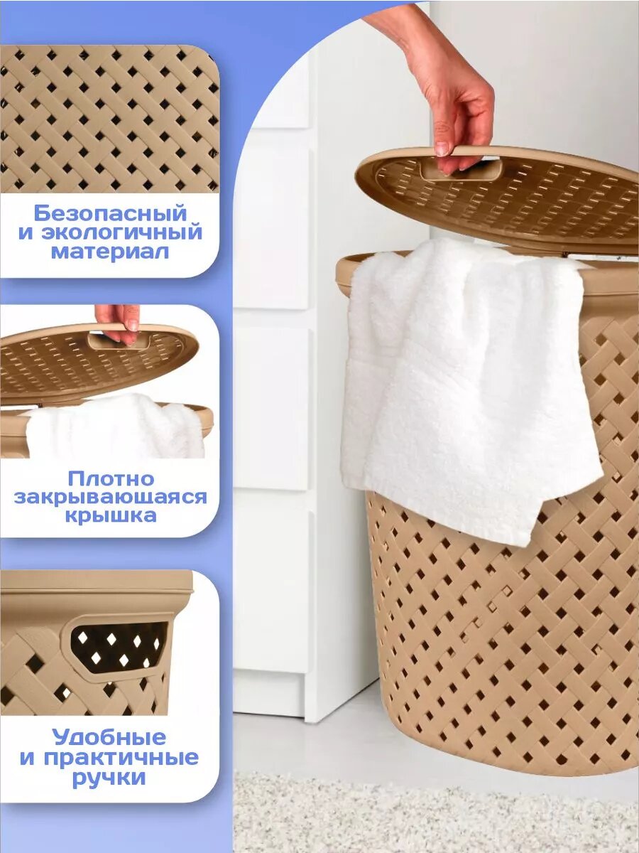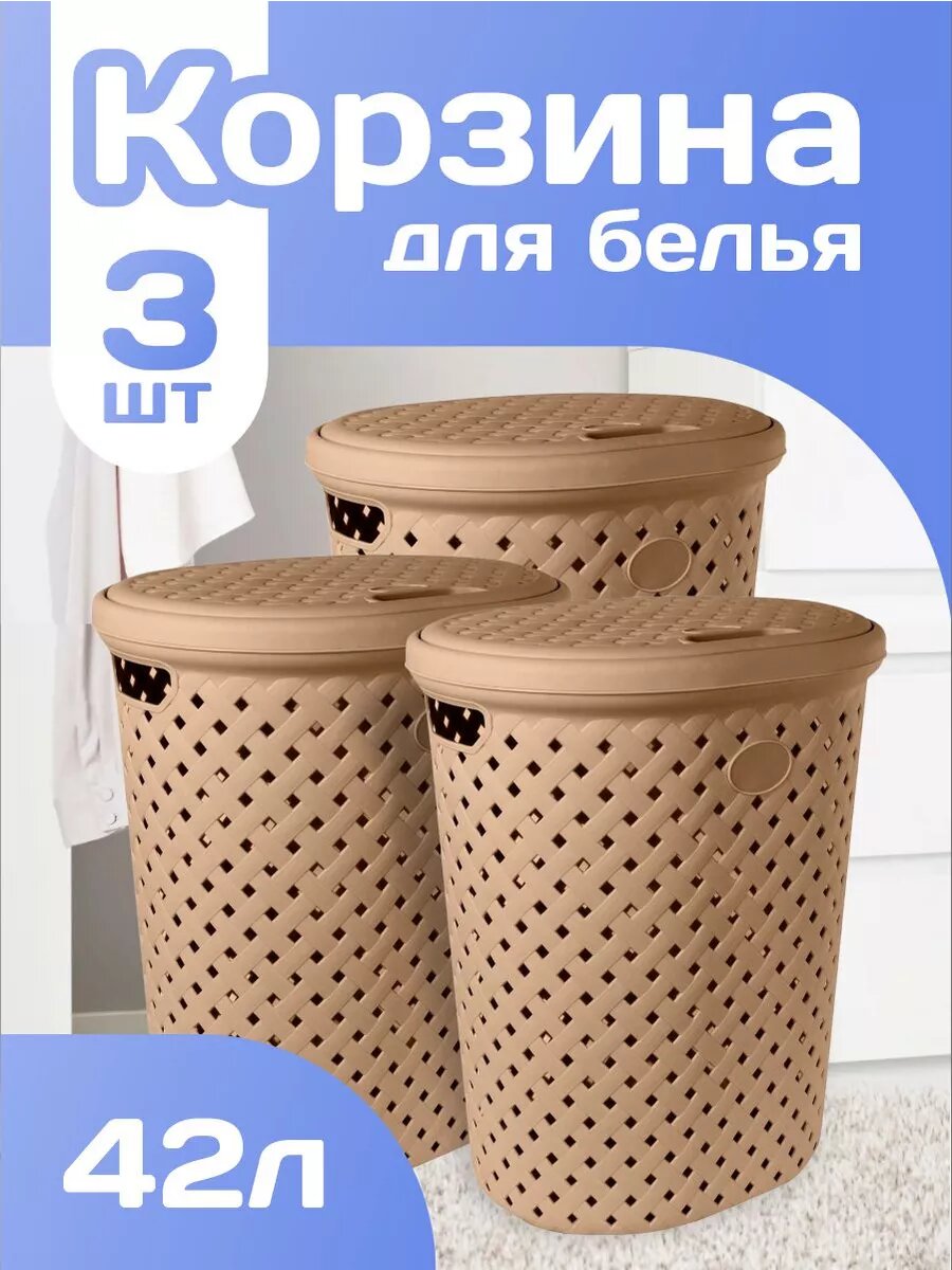 Корзина Plast Team «Rattan» для белья в ванную с крышкой плетеная пластик 42 л 3 шт, (шоколадный мокко) 4087: сравнение цен, характеристики, фото, актуальное наличие и цены.