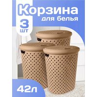 Купить Корзина Plast Team «Rattan» для белья в ванную с крышкой плетеная пластик 42 л 3 шт, (шоколадный мокко) 4087 с доставкой по всей России.