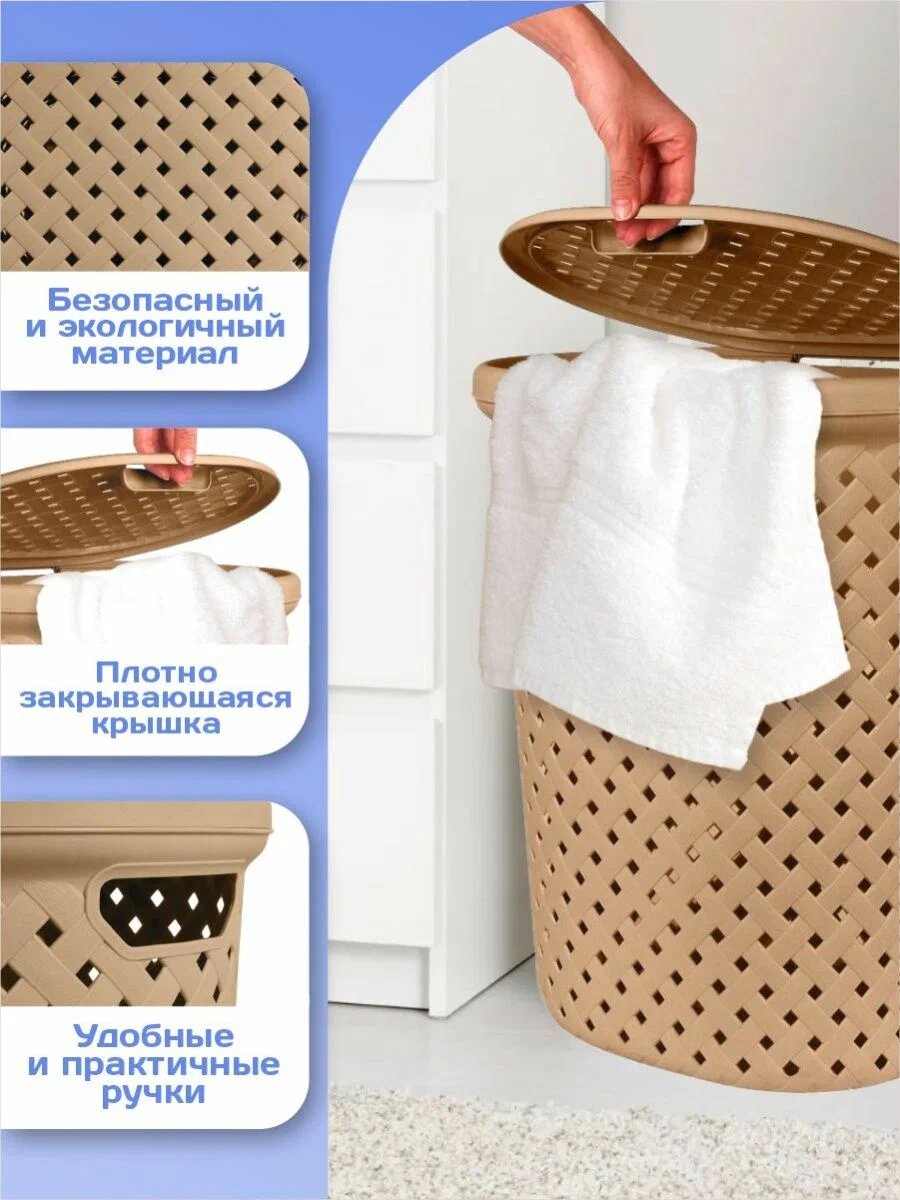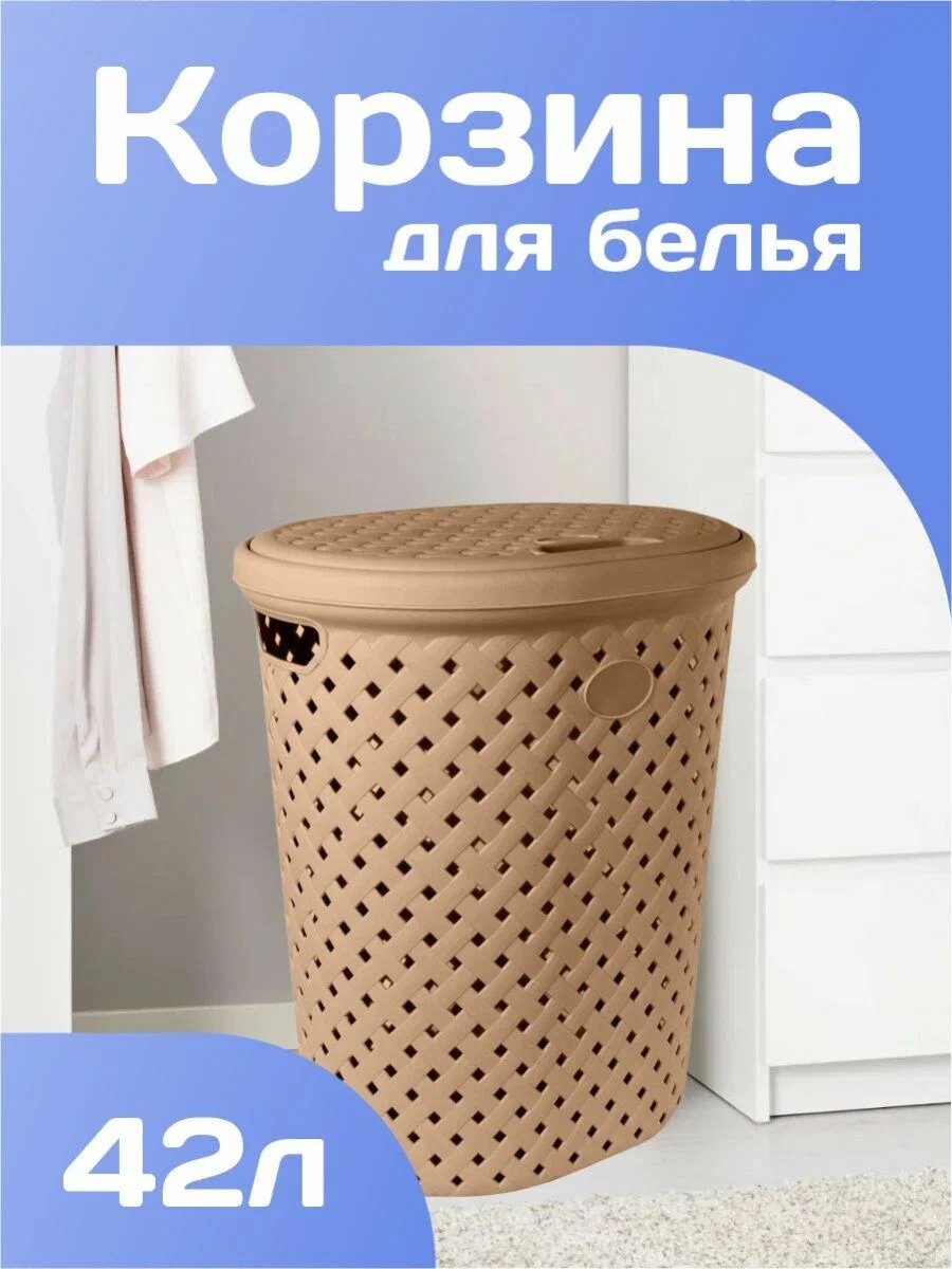 Корзина Plast Team «Rattan» для белья в ванную с крышкой плетеная пластик 42 л, (шоколадный мокко) 4087: сравнение цен, характеристики, фото, актуальное наличие и цены.
