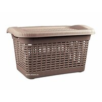 Корзина изготовлена из качественного пластика российским производителем 'Бытпласт', что гарантирует долговечность использования при правильном уходе. Плотная крышка защищает содержимое от пыли и посторонних запахов.