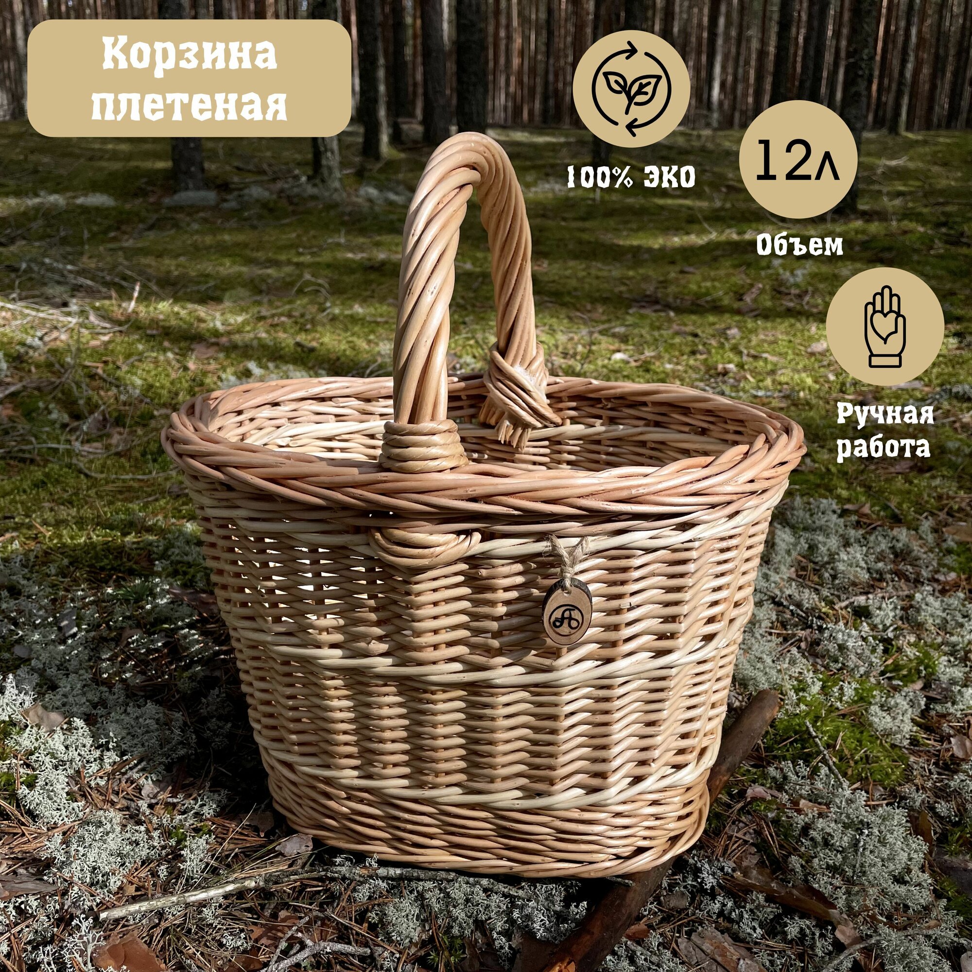 Корзина плетеная объемом 12 литров изготовлена вручную из цельной лозы. Ручка декорирована цельной лозой. Предназначена для похода за грибами, ягодами, орехами или на пикник. Корзина очень прочная, но при этом легкая и вместительная. Изготовлена из экологически чистого материала, покрыта водостойким пищевым лаком. Не боится влаги и пересыхания. В случае загрязнения промыть под проточной водой и оставить до полного высыхания. Любая семья обрадуется такому практичному подарку.