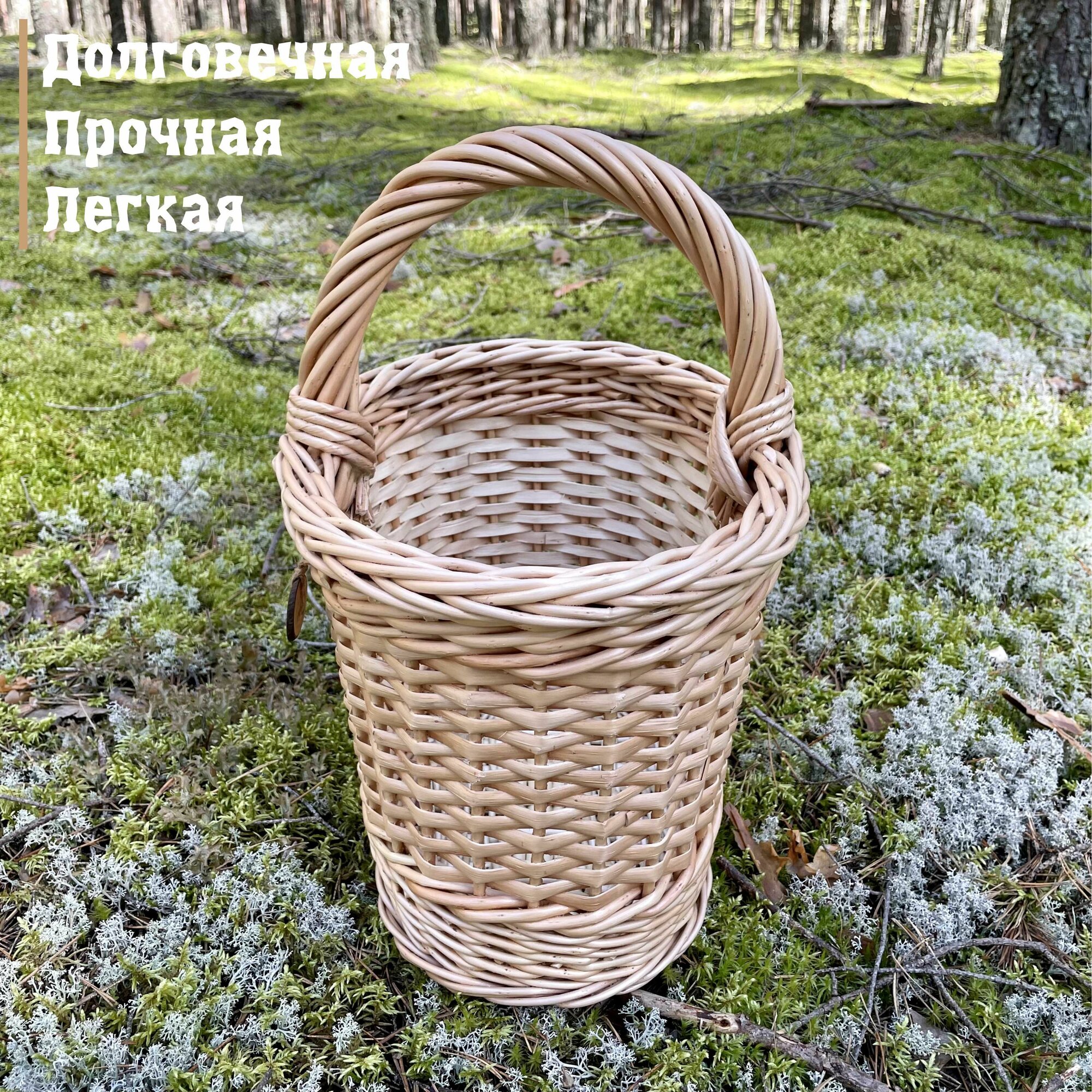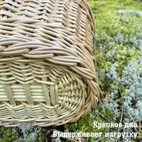 Классическая корзина объемом 10 литров изготовлена вручную из ивовой ленты. Ручка декорирована цельной лозой. Благодаря сочетанию плетения из цельной лозы ( донышко) и ивовой ленты (стенки) корзина прочная, но очень легкая и вместительная. Предназначена для похода за грибами, ягодами, орехами или на пикник. Изготовлена из экологически чистого материала, покрыта водостойким пищевым лаком. Не боится влаги и пересыхания. В случае загрязнения промыть под проточной водой и оставить до полного высыхания. Любая семья обрадуется такому практичному подарку.