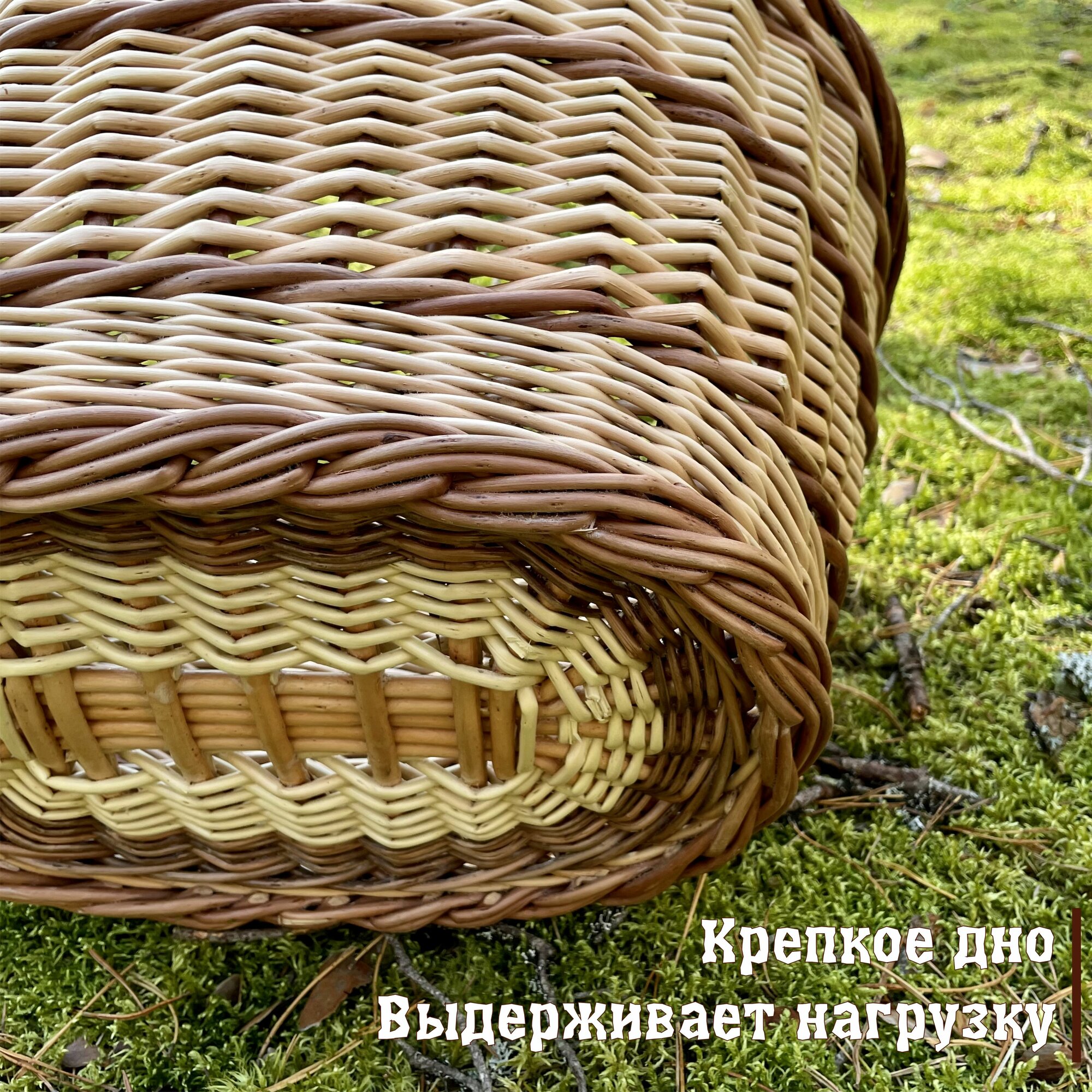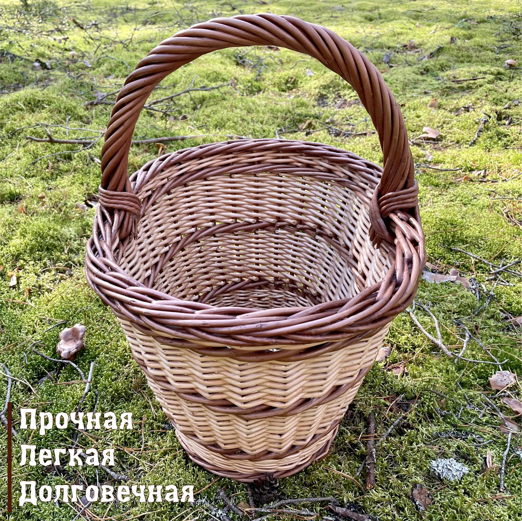 Корзина плетеная объемом 18 литров изготовлена вручную из цельной лозы. Ручка декорирована цельной лозой. Предназначена для похода за грибами, ягодами, орехами или на пикник. Корзина очень прочная, но при этом легкая и вместительная. Изготовлена из экологически чистого материала, покрыта водостойким пищевым лаком. Не боится влаги и пересыхания. В случае загрязнения промыть под проточной водой и оставить до полного высыхания. Любая семья обрадуется такому практичному подарку.