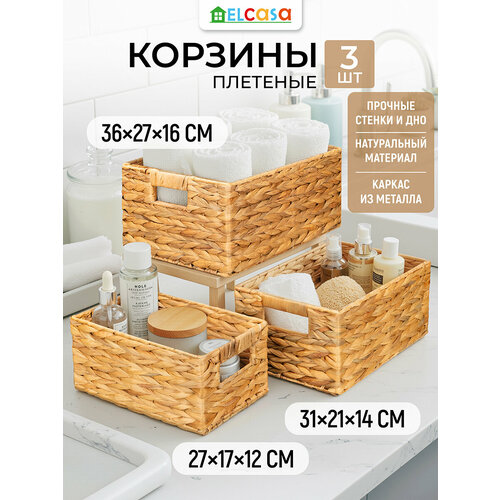 Купить Корзина плетеная для хранения 3 шт EL Casa, водный гиацинт, 27х17х12,5 см, 31х21х14,5 см, 36х27х16,5 см, набор с доставкой по всей России. Корзина плетеная для хранения 3 шт EL Casa, водный гиацинт, 27х17х12,5 см, 31х21х14,5 см, 36х27х16,5 см, набор: сравнение цен, характеристики, фото, актуальное наличие и цены.
