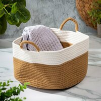 Плетеная структура делает эту большую корзину легкой и универсальной. Корзина для хранения оснащена удобными ручками, что позволяет легко переносить ее из одной комнаты в другую. Материал хозяйственной корзины придает ей особый шарм, а так же является экологичным и безопасным для природы.
